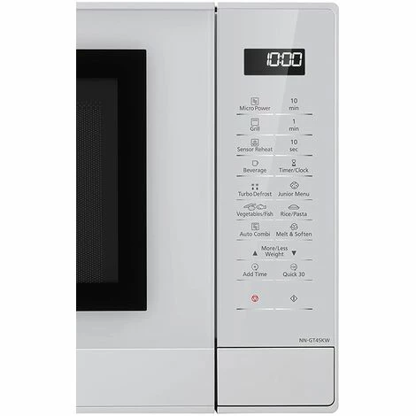 Der Mikrowellengrill NN-GT45KWSUG von Panasonic mit Wechselrichtertechnologie garantiert ein konstantes und gleichmäßiges Garen von Speisen. Doppelgaren: Dank der Wechselrichtertechnologie kocht die Leistung der Mikrowelle Speisen schnell, während der Grill für eine Bräunung und ein knuspriges Garen sorgt. All dies geschieht gleichzeitig und führt zu einem schnelleren Garen. 1000W Fast 30-Funktion: Mit dieser Funktion können Sie 30 Sekunden lang schnell und einfach kochen, ohne zusätzliche Einstellungen vornehmen zu müssen. Bei jedem Drücken der Taste wird die Einstellung auf 30 Sekunden eingestellt, und die Einrichtung in 5 Minuten ist möglich. Öko- und helle Lampe: LED-Beleuchtung macht das Innere des Ofens heller, sodass die Bedingungen bei The Evolution of Inverter Technology leichter überprüft werden können von Panasonic: Traditionelle Modelle von Mikrowellenherden bieten nur eine Leistungsstufe: Ein / Aus. Die Panasonic Inverter-Technologie bietet kontinuierliche Kochleistung, sodass der Geschmack und die Textur Ihrer Lieblingsspeisen erhalten bleiben. Inverter Turbo Defrost: Panasonic hat die Turbo Defrost erfolgreich aufgerüstet, sodass Sie Lebensmittel noch schneller auftauen können als die ältere Panasonic Auto Defrost. Die Panasonic Inverter Turbo Defrost-Technologie ist ein fortschrittliches Mikrowellen-Sequenzierungssystem, das die kontinuierliche Stromversorgung der Küche der Wechselrichterfamilie nutzt: Der NN-GT45KWSUG mit einem Fassungsvermögen von 31 l besteht aus einem 34-cm-Glas-Drehteller. Verwenden Sie größere Gerichte, um für die ganze Familie zu kochen. Es gibt kein Alter für gesunde Ernährung: Selbst die anspruchsvollsten Gaumen werden vom Junior-Menü begeistert sein. Mit seinen 3 automatischen Programmen (Gemüsepüree, Obstkompott, Haferbrei) ist die Zubereitung von Mahlzeiten ein Kinderspiel. Ein Mikrowellenherd, der auf knusprigere Ergebnisse anstößt: Der 1100-W-Quarzgrill gratiniert Ihre Mahlzeiten. Lieblingsrezepte wie Pizza, Quiches und Gemüse. Mehrere automatische Grillmenüs liefern jeden Tag knusprige Ergebnisse. Eine neue Art des Kochens: Entdecken Sie die Freude am frischen und gesunden Kochen mit der Mikrowellen-Wechselrichtertechnologie von Panasonic. Dank der präzisen Leistungsregelung werden die Gerichte in kürzester Zeit gleichmäßig und fertig zubereitet. – Produkttyp: Mikrowellengrill.