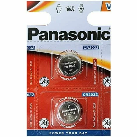 Panasonic CR2032 Nicht wiederaufladbare Lithium-Knopfzelle, 3V, 225 mAh, Packung mit 2 Stück.