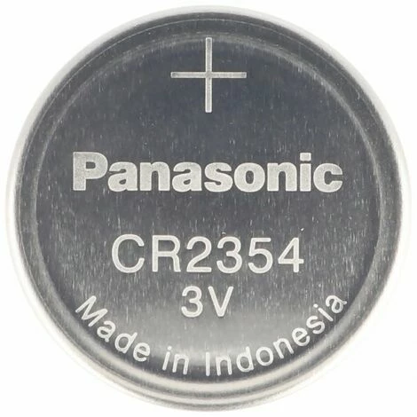 Panasonic Lithium Einweg-Batterie Type CR2354 mit der Vertiefung am Minuspol d.h. es gibt einen kleineren Rand in Richtung Minuspol